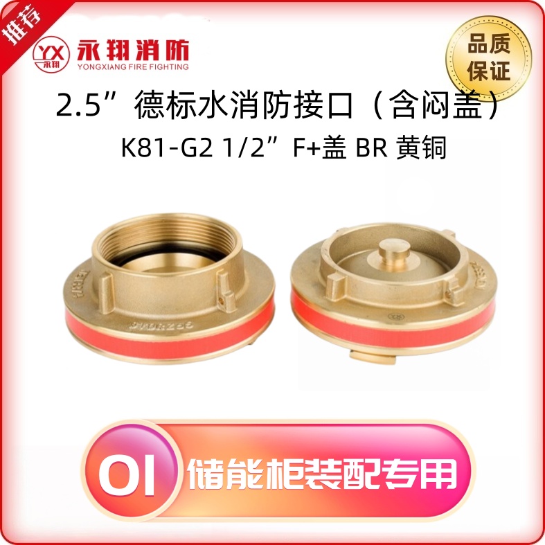 2.5”德式水消防接口闷盖 K81-G2 1/2'F +盖子AL铝镀铜,表面阳极氧化处理