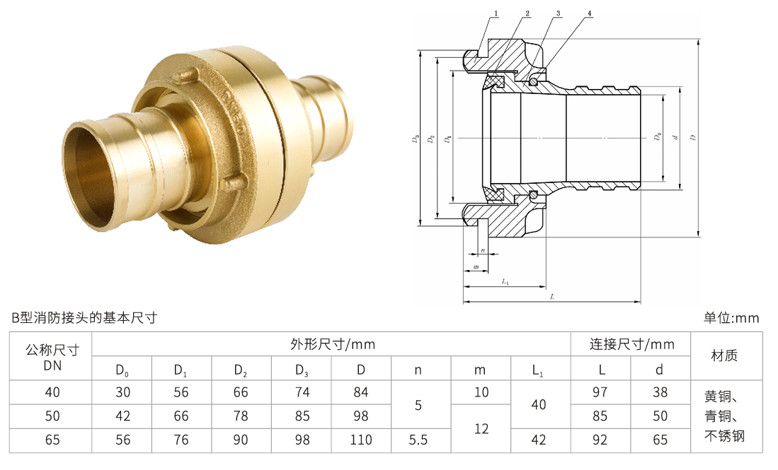 B型消防水带接口(黄铜)