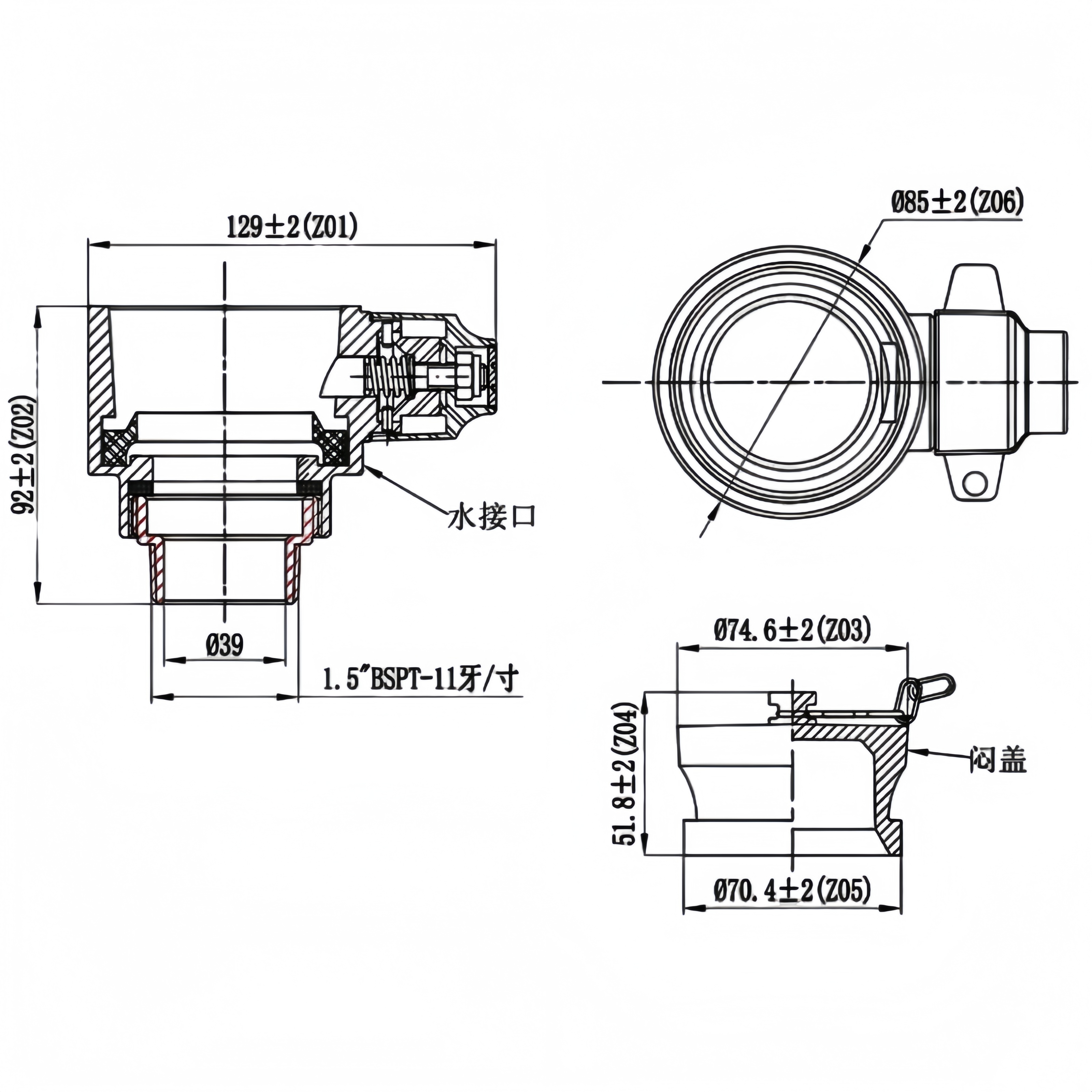 英式水消防接口闷盖 1.5 " Female(BSPT)+2.5"Cap+BR